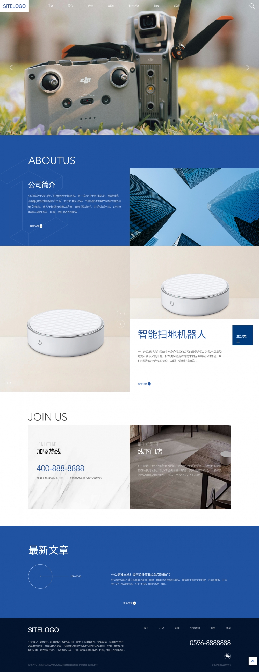 登录网站后台点击“设置模板”“获取更多模板”在线安装“无人机厂家响应式网站模板”